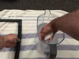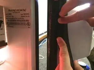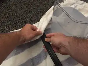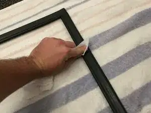 Чтобы переустановить уплотнитель, проденьте его заднюю часть за белую раму.