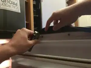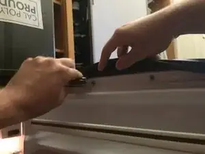 Приподнимите уплотнитель двери и найдите винты, которые его крепят. Ослабьте винты так, чтобы они были очень свободными, но оставались в отверстиях.