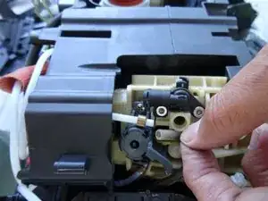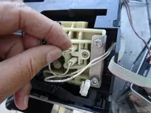 Выверните один винт с крестообразным шлицем на микропереключателе и поднимите микропереключатель наружу.