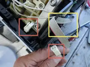 Поднимите панель управления немного вверх. Нажмите защёлку на белом разъёме и снимите разъём.