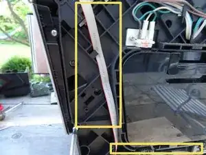 Освободите гибкий плоский кабель, ведущий к электронике управления сзади, насколько возможно. Это удлинит его, и вы сможете положить панель управления набок.
