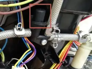Выньте клапан. Две шланги слева могут оставаться подключёнными.