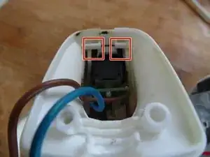 Осторожно чуть прижмите два зажима на модуле переключателя вниз. Затем немного потяните модуль внутрь.