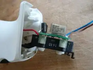 Выньте два переключателя и маленькую плату. Переключатели просто защёлкиваются.