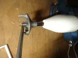 Если он не снимается легко, сдвиньте нижнюю пластиковую часть в сторону колокола и зажмите мотор в тисках. Не затягивайте тиски сильно — мотор чувствителен.