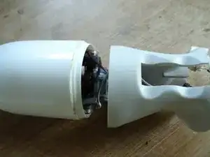 Мотор открыт. Однако он ещё не полностью доступен, так как нижняя пластиковая часть корпуса пока не может сойти с колокола. Сначала нужно снять колокол.
