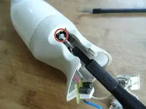 Рукоять закреплена винтом с резьбой Torx T8 и пластиковым винтом Torx T8. Понадобится длинная отвертка.
