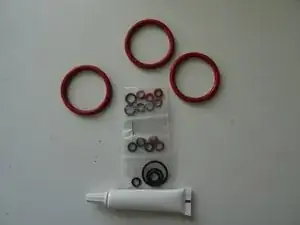 Комплект технического обслуживания включает в себя в общей сложности 18 уплотнений для верхнего поршня и ещё два — для нижнего поршня.
