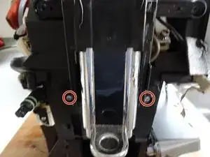 Крепление верхнего поршня фиксируется двумя винтами с левой стороны. В зависимости от модели, эти винты могут быть скрыты.