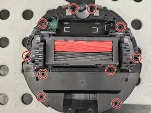 У Вашего робота может быть другая версия LDS, в которой необходимо сначала снять ведущее колесо, чтобы получить доступ к винтам. В этом случае перейдите к руководству: Roborock Q Revo: замена лазерного дальномера и пропустите до шага 12.