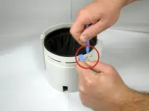 Завестите пластиковый инструмент для открытия между фильтровальной корзиной и ее корпусом.