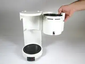 Ухватитесь за фильтровальную корзину крепко и поднимите вверх. Возможно, вам потребуется одной рукой удерживать корпус кофеварки на месте, чтобы удалить детали.