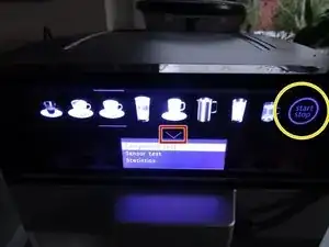 Одновременно коснитесь первого (эспрессо) и последнего (горячая вода) полей в списке. Поля должны быть тёмными.