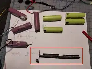 Разберите/распаяйте старый блок. Временно соберите новые аккумуляторы. Я использовал старую держатель-скобу (фото 2) и провода.