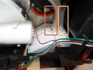 Отсоедините силиконовый шланг, ведущий изнутри к соединению бака для воды.