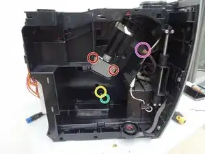 Также выверните два винта с овальной головкой под крышкой отсека для молотого кофе.