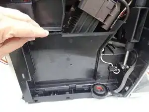 Слегка потяните левую боковую панель к задней части и снимите её.