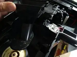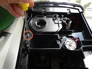 Выверните винт Torx T10, который фиксирует лоток для порошка.