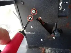 Удалите два винта с крестообразной шлицей, обведённые красным.
