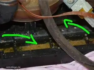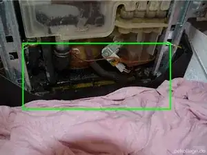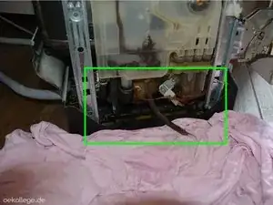 ... Лишняя вода, по-видимому, поступает из переливного шланга (иногда вынимаемого из машины: смотрите в центре зеленого коробки) ...