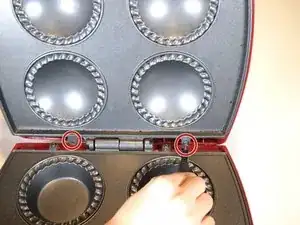 С помощью отвертки Phillips #2 удалите два винта 12 мм, которые крепят верхнюю половину к петлям.