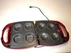 Руководство по эксплуатации: вставьте вилку формовочной машины для пирогов в розетку на 120 В. Индикатор питания (красный) загорится. Дождитесь, пока пластины нагреются до необходимой температуры и загорится индикатор «Готово к выпечке!» (зелёный).