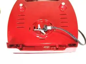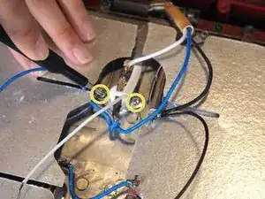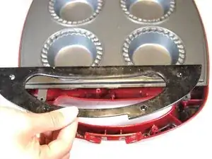 Той же отверткой удалите два винта 6 мм, которые крепят термостат к задней части верхней формы для пирогов.