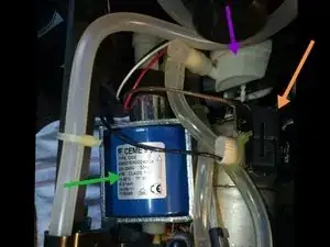 Проследите все шланги, чтобы увидеть, движется ли вода. Если вода движется, но в верхнюю часть контейнера для капсул вода не поступает, котёл зашлакован и поэтому забит. Вода тогда возвращается в резервуар через предохранительный клапан.