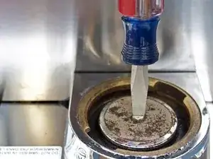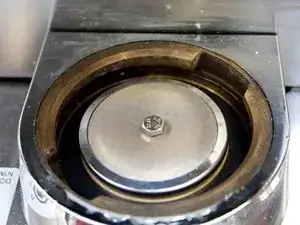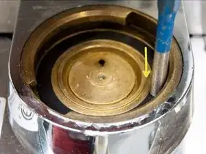 В версии 3 потребуется снять латунный диск. Просто поднимите его. Если он застрял, можно осторожно использовать пассатижи-«каналку», чтобы ослабить. Будьте аккуратны — не повредите латунь! Снять латунный диск в версиях 1 и 2 нельзя.