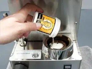 Мы обычно высыпаем примерно 1/2 чайной ложки чистящего средства для кофе на дно группы.