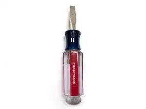 Наша любимая отвертка для извлечения трудноудаляемых винтов. У нее большая ручка для хорошего захвата. Отвертка не должна быть слишком длинной, иначе она ударится о поддон и не войдет. Это отвертка Craftsman 5/16" x 1 3/4" с плоским лезвием.