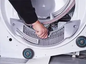 Сдвиньте основную плату вперёд по барабану сушилки, чтобы освободить язычки, крепящие её к кронштейну.