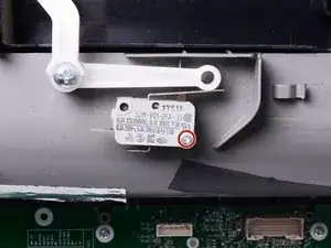 Используйте крестовую отвёртку, чтобы удалить винт(ы), фиксирующий(ие) переключатель выдачи льда к сборке диспенсера.