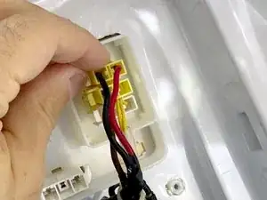 Снимите светлый разъёмный зажим. На каждом конце зажима (сверху и снизу) имеются две фиксирующие защёлки, которые можно поддеть ногтем.