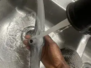 Достаньтесь распылитель, используйте любой источник чистой воды (например, раковину) и тщательно промойте распылитель теплой водой.