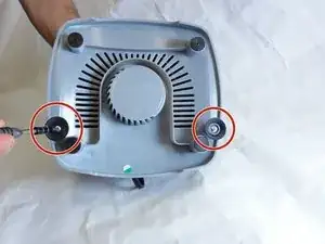 Отверните все 4 винта, расположенные под подкладками, с помощью отвертки, и удалите пластиковое серое основание.
