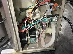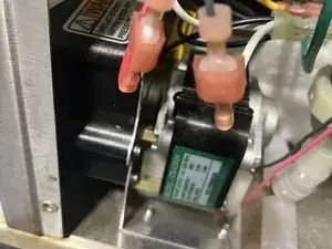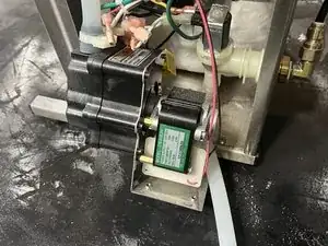 Найдите главный насос в нижней левой части внутри машины. От него сверху выходят два резиновых шланга.