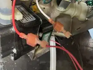 Отключите два провода от насоса в местах «мама-папа» разъёмов.