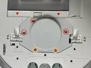 Используйте крестовую отвертку #2, чтобы отвинтить четыре винта 9 мм, удерживающие лазерный датчик расстояния на месте.