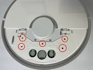 Используйте крестовую отвертку #2, чтобы отвинтить шесть винтов 9 мм, фиксирующих другую половину верхней панели, закрывающую контейнер для пыли.