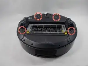 Удалите четыре винта длиной 6.4 мм с нижней части Roomba с помощью отвертки Phillips #0.