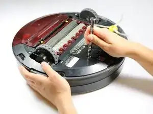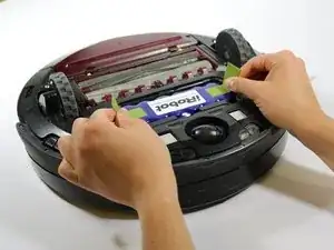 Начните с того, чтобы Roomba был перевернут, колеса должны быть направлены вверх.