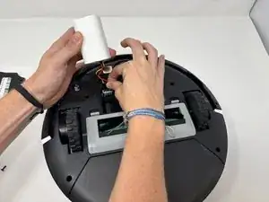 Вытащите аккумулятор и подключенные к нему провода изнутри Roomba.