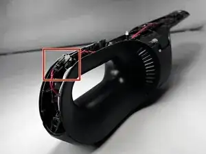 К нему будут прикреплены провода, которые ранее были отсоединены и должны пройти через ручку пылесоса. Выполняйте этот шаг аккуратно, чтобы не повредить провода.