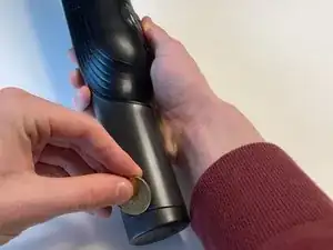 Используя монету или другой тонкий предмет, такой как медиатор, вытащите крышку на конце пылесоса. Переключайтесь между сторонами, чтобы она выходила равномерно.