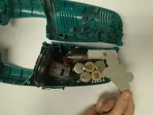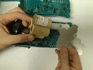 Снимите вторую серебристую крышку аккумулятора с нижней части внутренней части устройства.