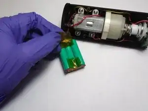 Осторожно снимите ленту, чтобы освободить доступ к 3 аккумуляторам.
