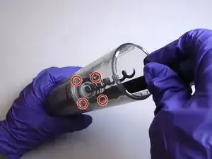 Используя отвертку Phillips #1, открутите каждый из четырех винтов длиной 12.7 мм внутри и внизу пластиковой трубки.