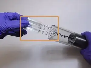 Удалите сборку пружины из прозрачной пластиковой трубки.