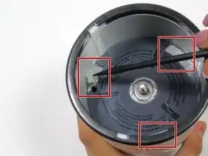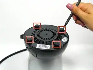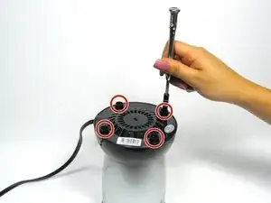 Отверткой Phillips #1 выкрутите четыре винта с крестообразным шлицем длиной 14,0 мм в ножках основания Magic Bullet.